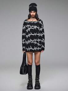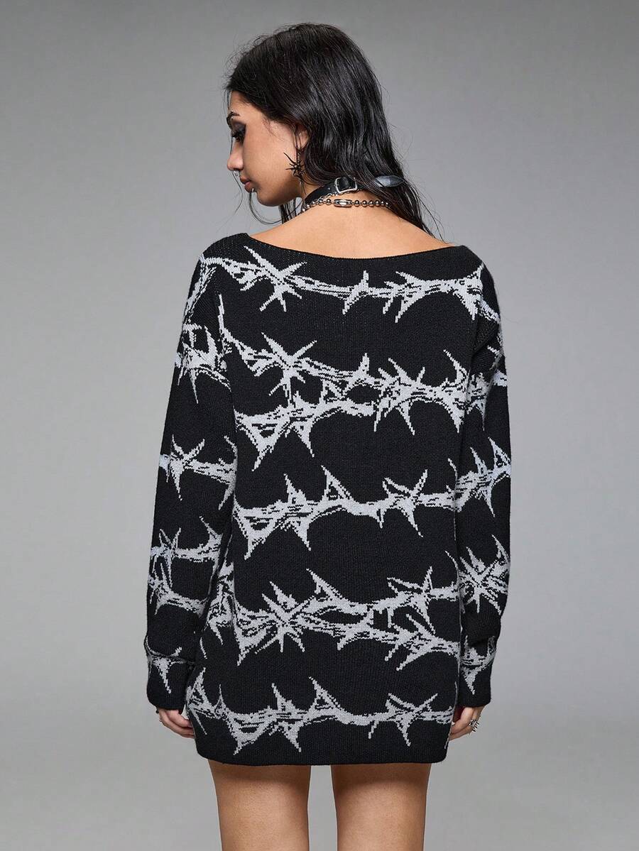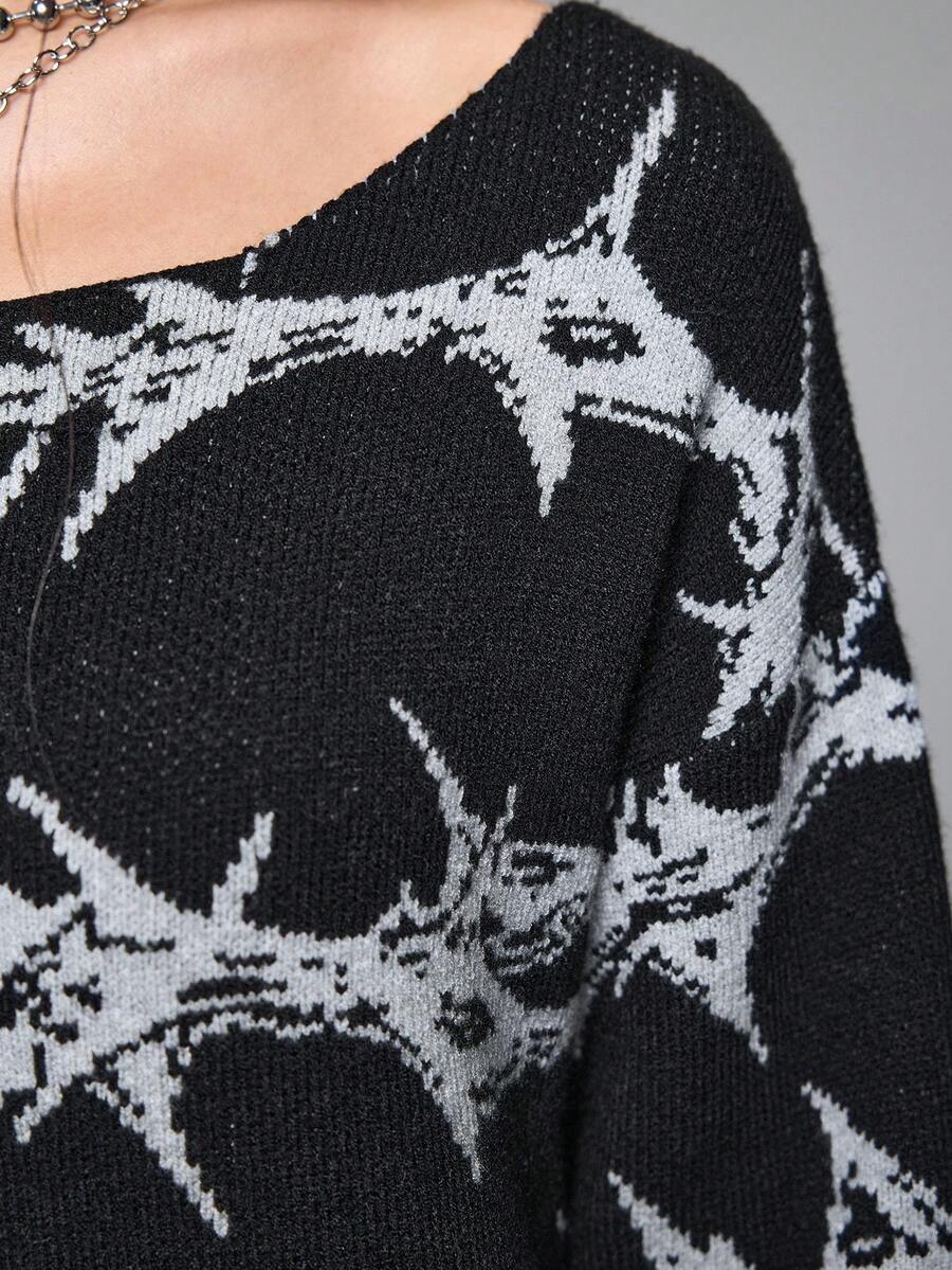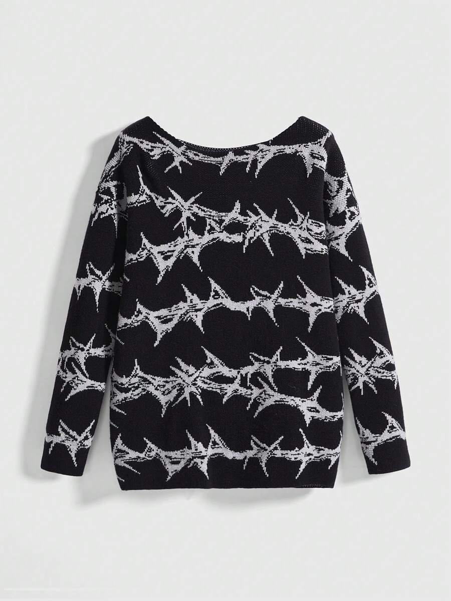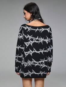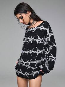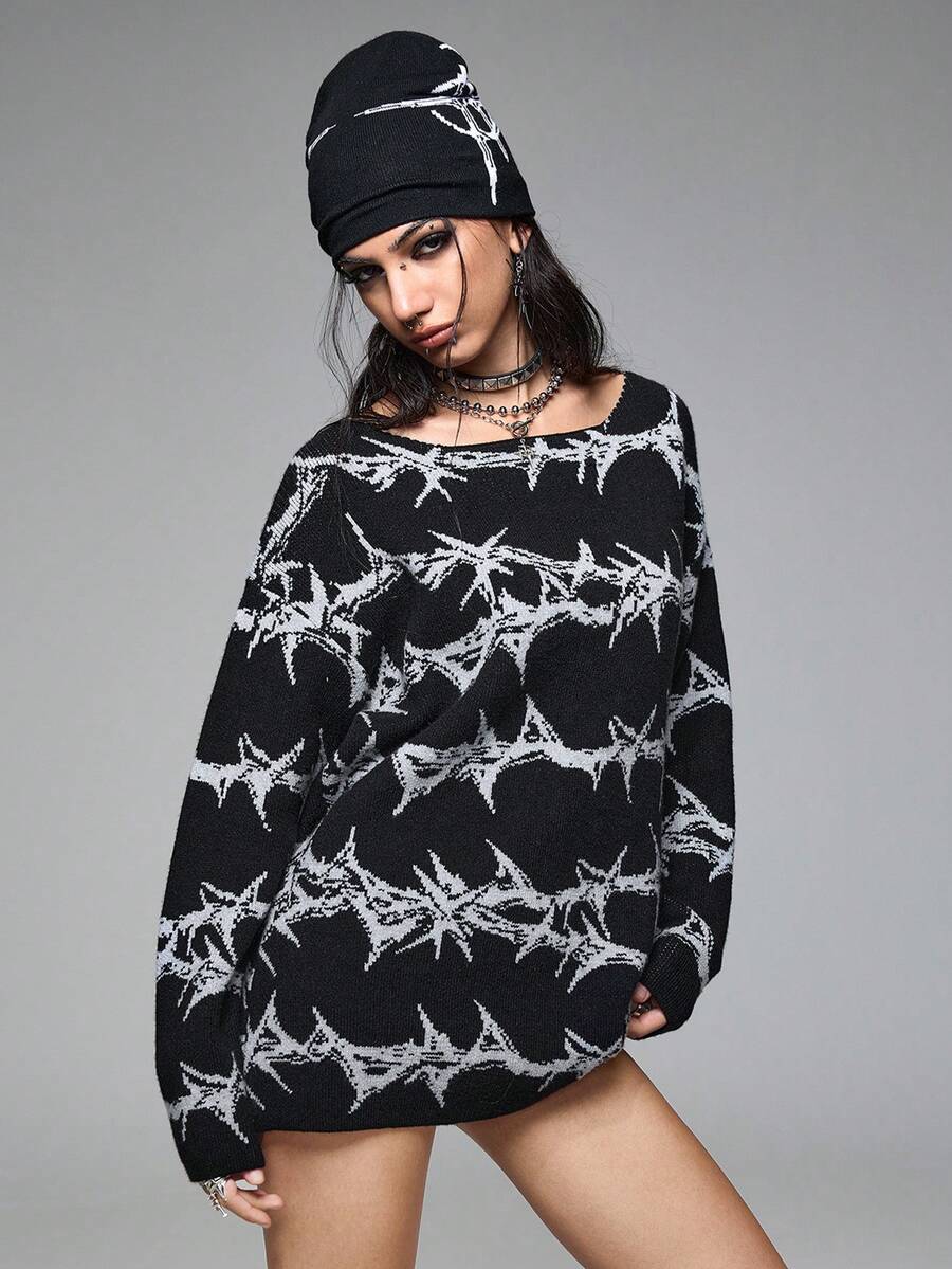 Grunge Punk Suéter holgado con estampado de espinas de estilo punk