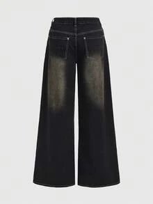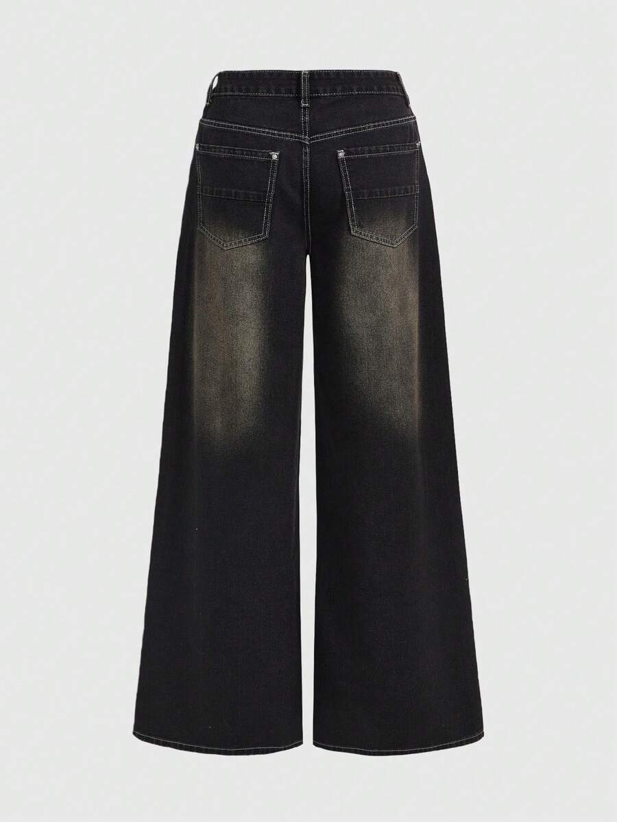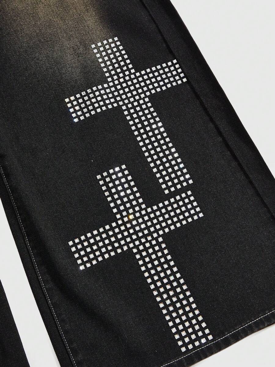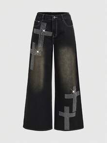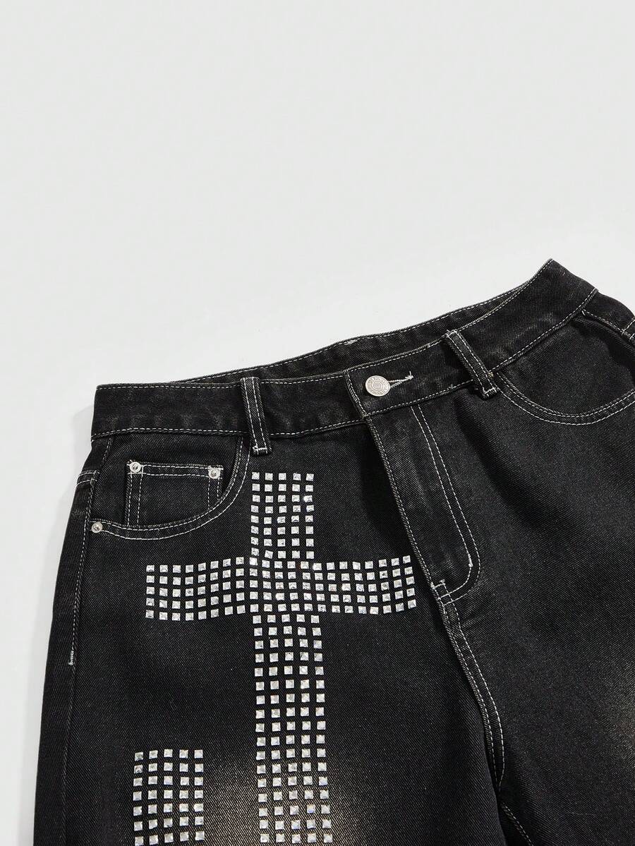 Grunge Punk Jeans de mujer con ajuste relajado, estilo grunge, desgastados y vintage, con gráfico de cruz oversize