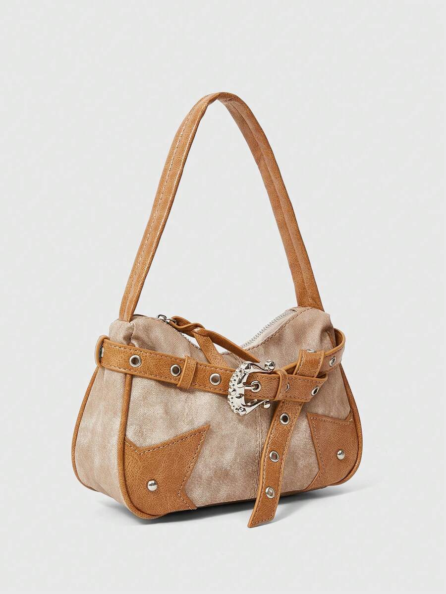 Grunge Punk Bolso cuadrado pequeño de estilo casual retro para mujer, nuevo bolso de moda de otoño e invierno con correa bandolera y de hombro