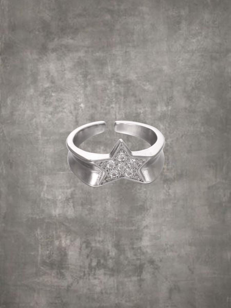 Grunge Punk Anillo abierto con diseño de diamante de imitación