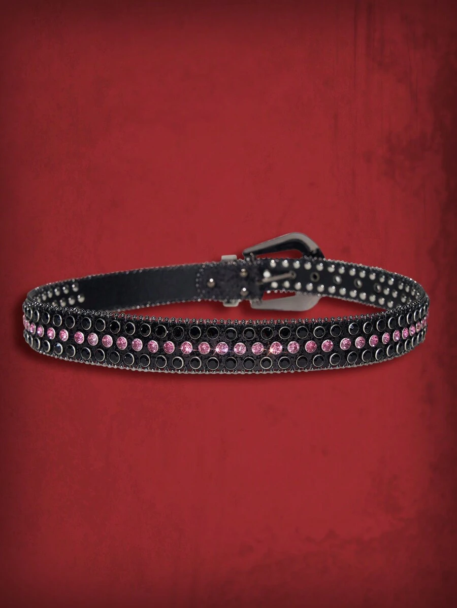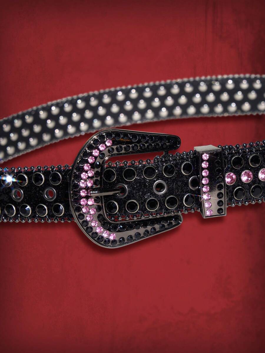 Grunge Punk Cinturón con diamante de imitación & de metal con diseño de ojal punk