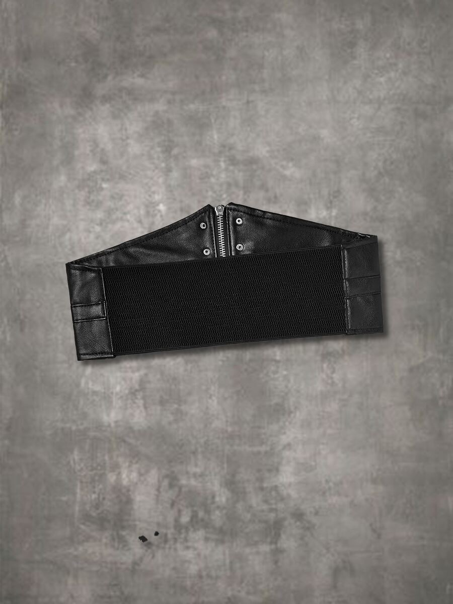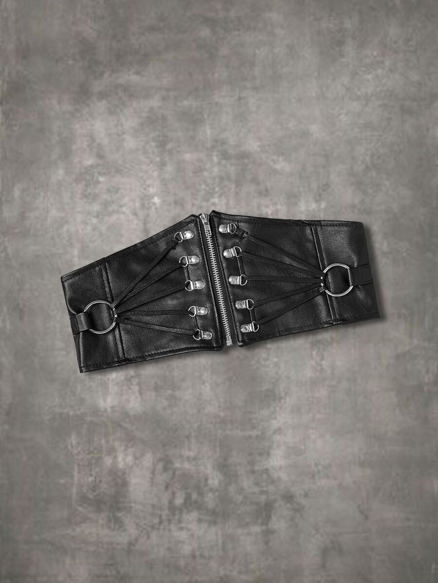 Grunge Punk Cinturón corsé adorno de anillo con cremallera delantera