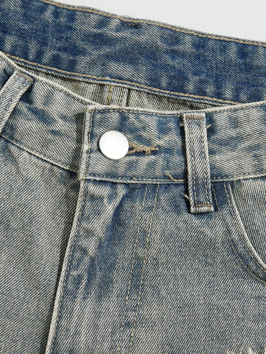Grunge Punk Pantalones cortos vaqueros con bajo deshilachado y desgarrado, escuela