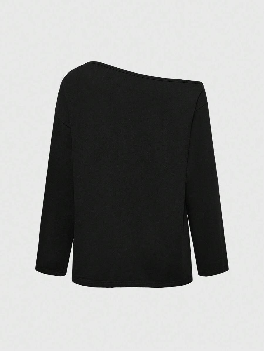 Grunge Punk Camiseta básica de manga larga, holgada y de algodón negro sólido con hombro asimétrico sexy para mujeres