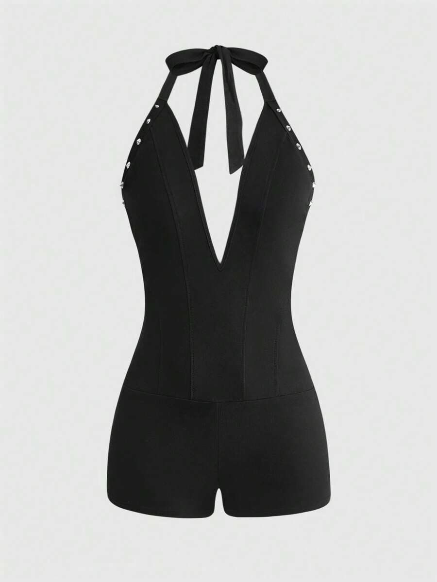Grunge Punk Mono de cuello halter, cintura baja, estilo sexy Y2K para fiestas, festivales de música y actuaciones