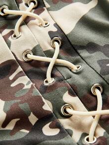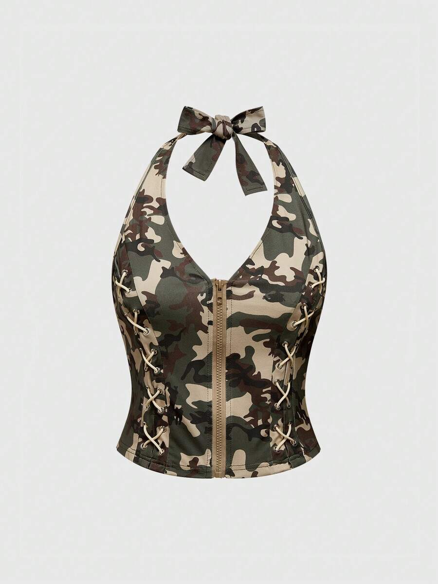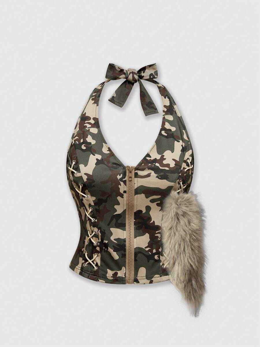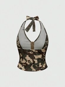 Grunge Punk Camiseta de tirantes finos y espalda descubierta con diseño de correa de camuflaje estilo Gyaru de Shibuya, sin accesorios de piel