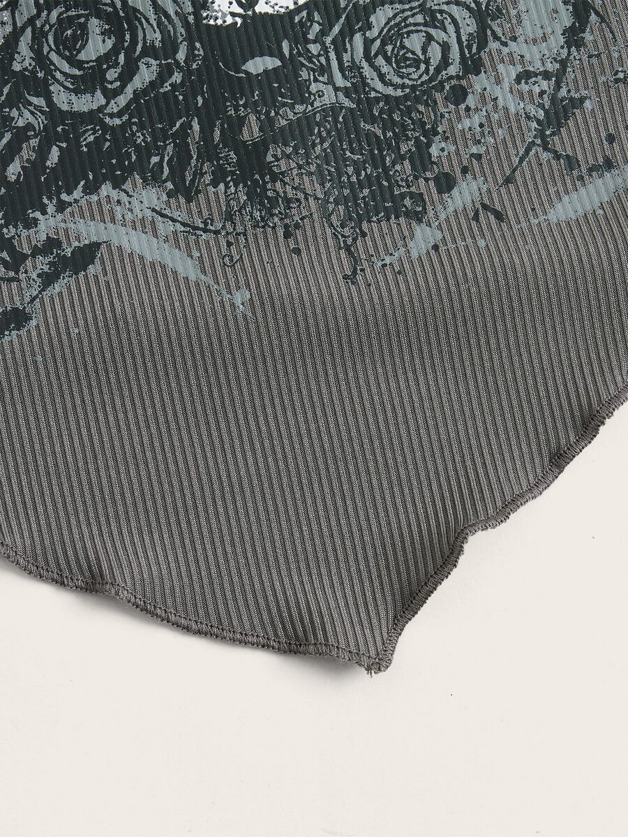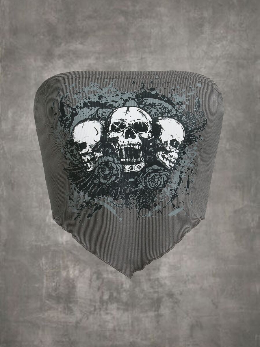 Grunge Punk Top tubo crop con estampado floral con cráneo bajo pañuelo
