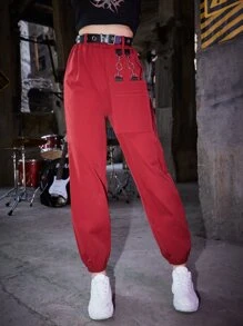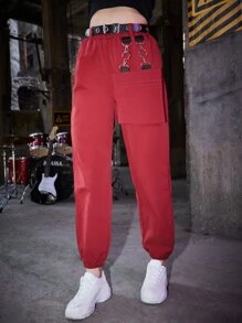 Grunge Punk Pantalones unicolor con cinturón con bolsillo