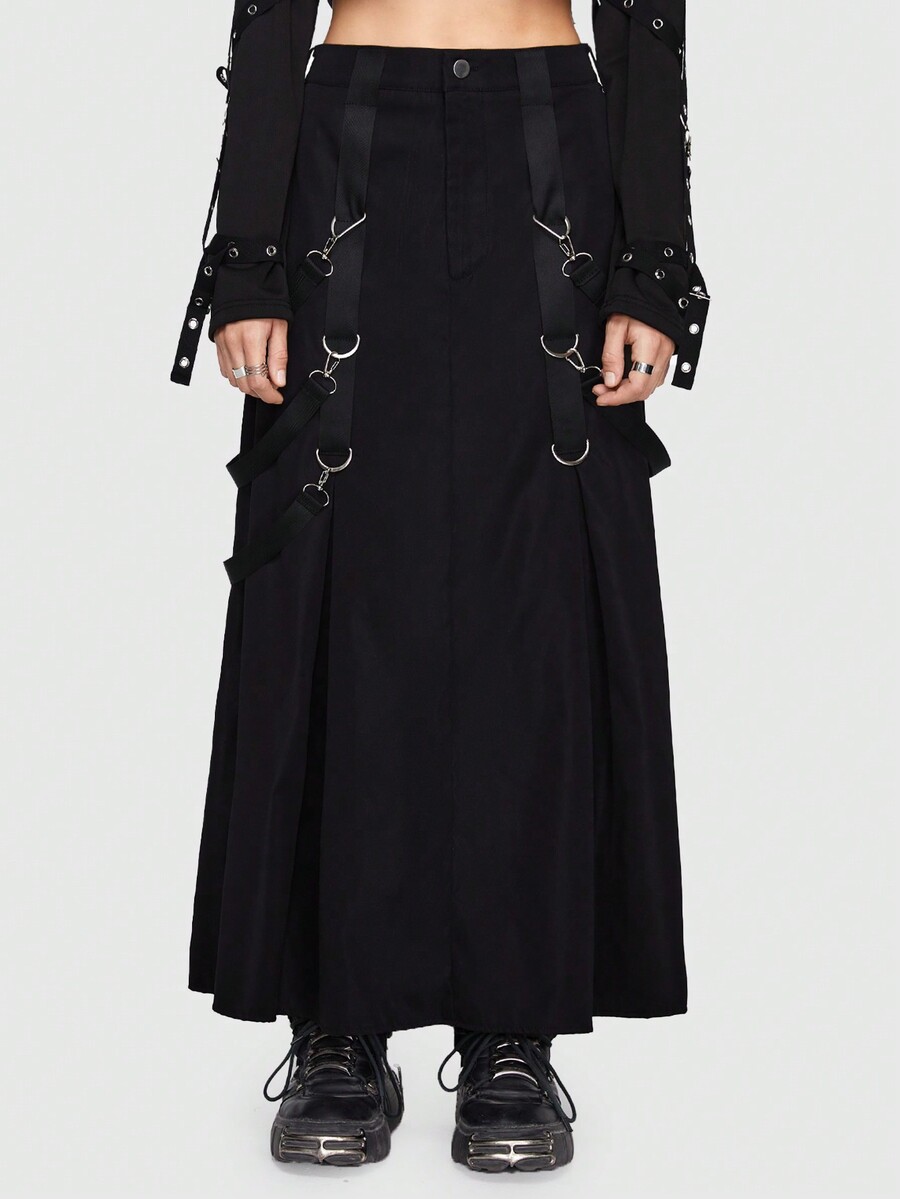 Grunge Punk Falda unicolor con diseño con hebilla con fruncido