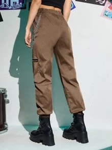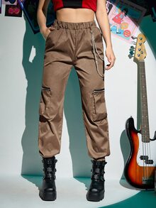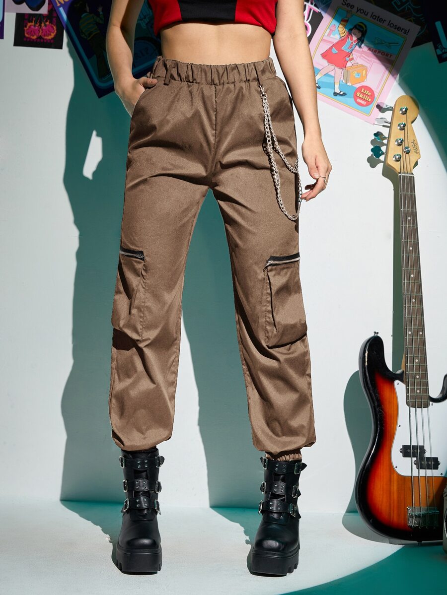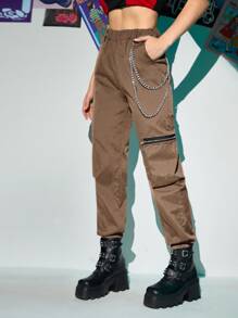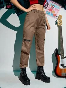 Grunge Punk Pantalones cargo unicolor con bolsillo con cremallera