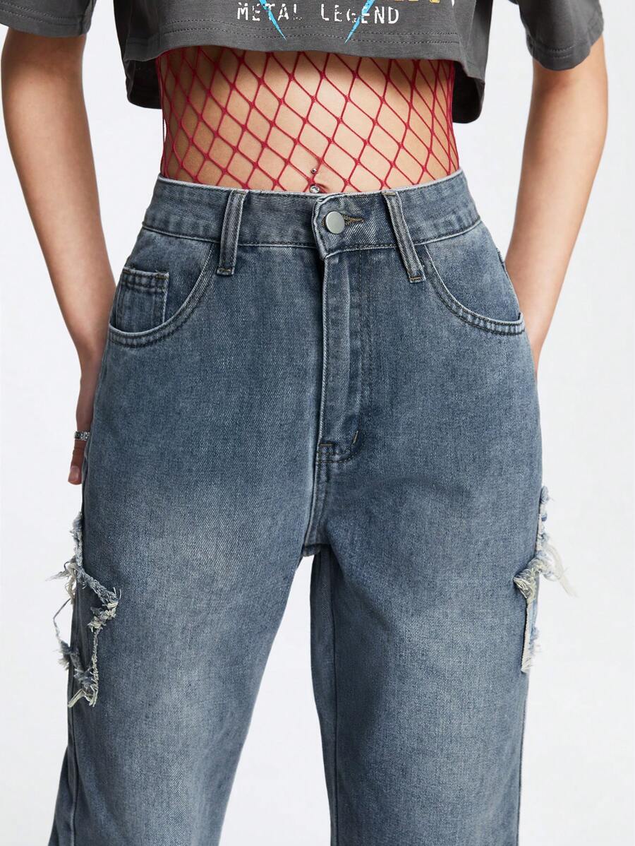Grunge Punk Jeans de pierna recta con estampado de estrellas, para uso escolar