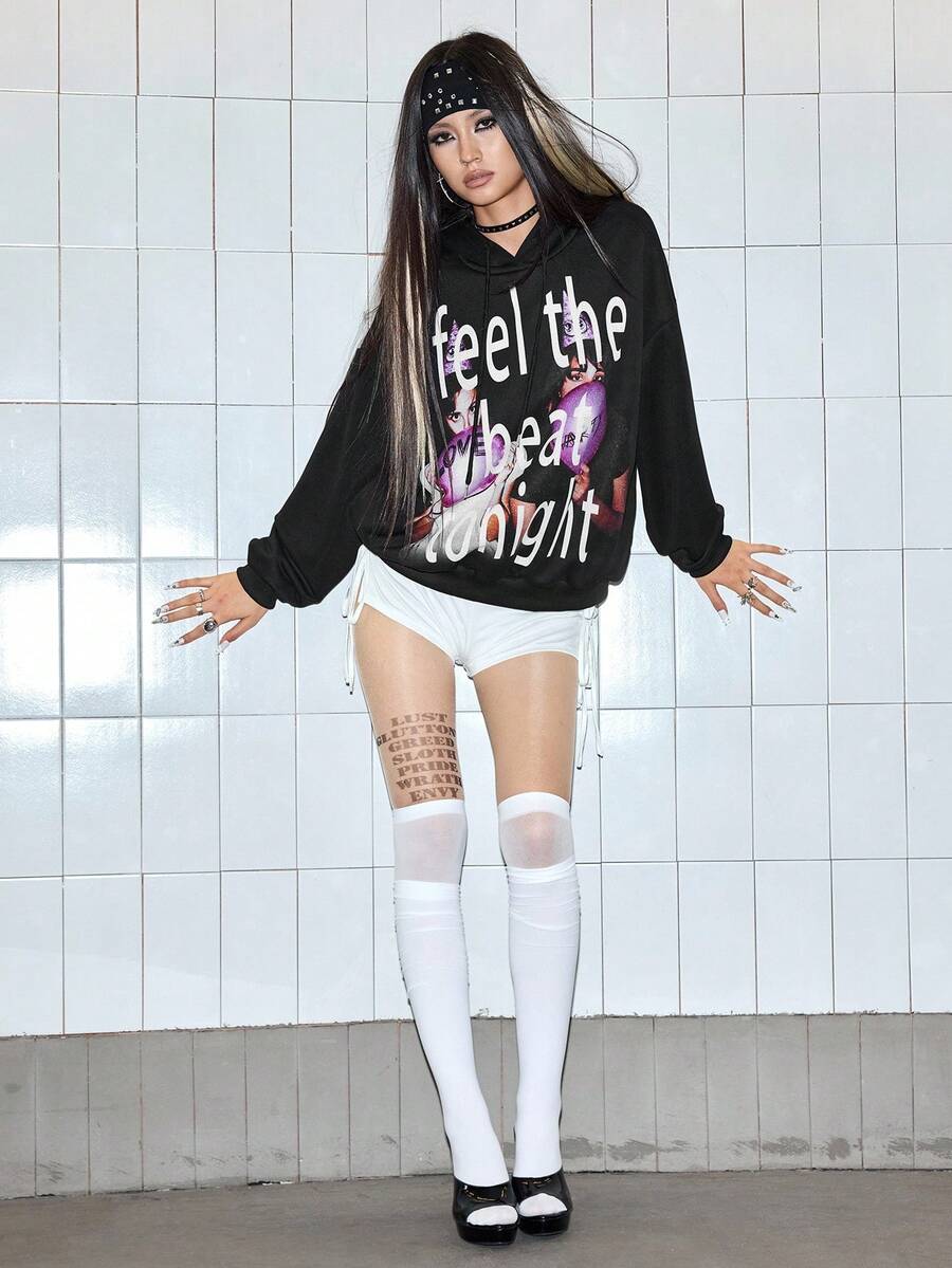 Grunge Punk Sudadera con capucha con cremallera con estampado de retrato vintage desgastado