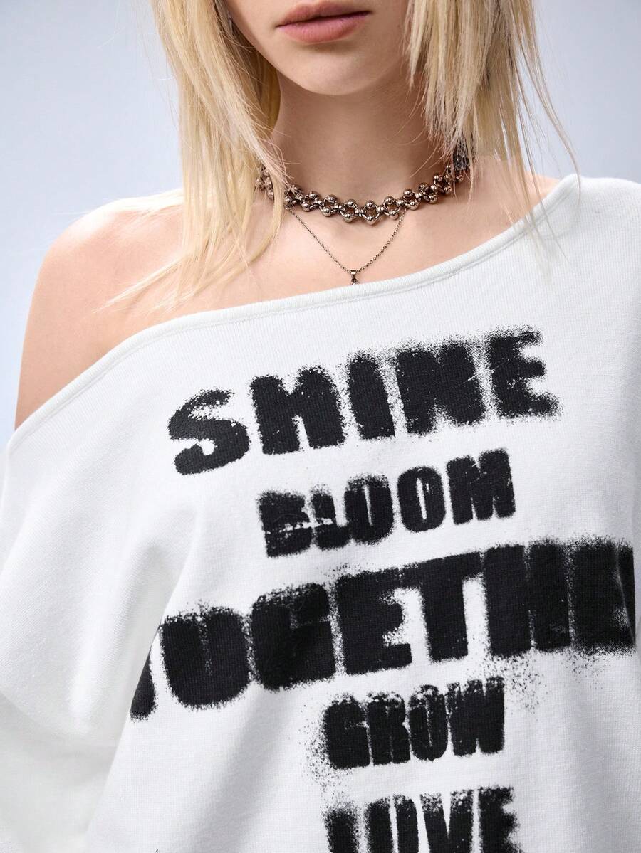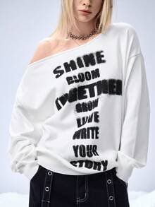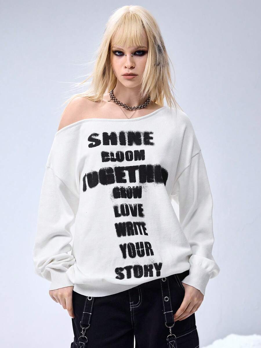 Grunge Punk Suéter asimétrico de punto con estampado de lema vintage inglés