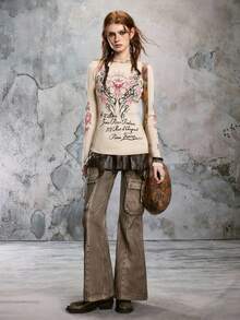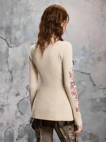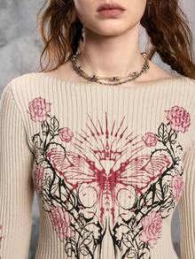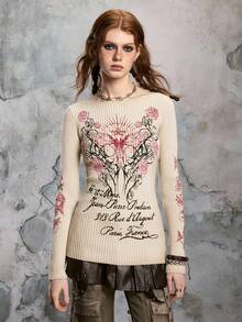 Grunge Punk Suéter de punto jacquard vintage acanalado