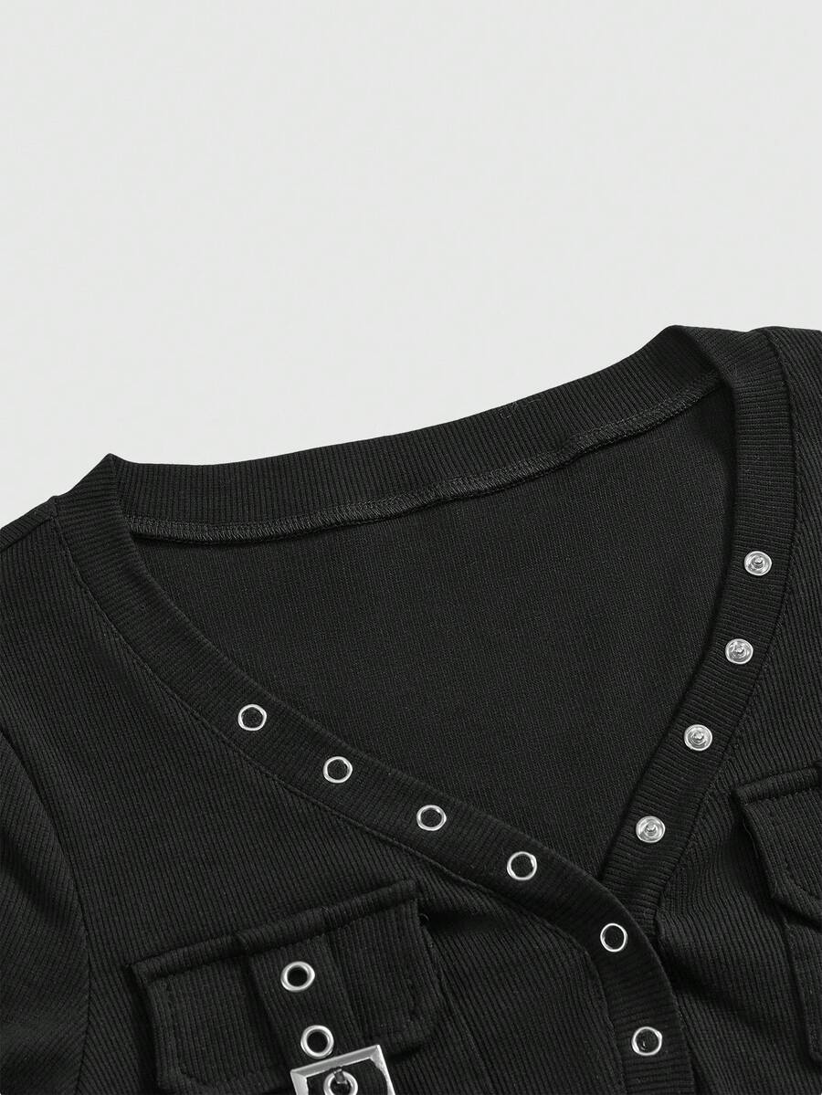 Grunge Punk Camiseta gráfica desgastada de manga corta y escote bajo en gris y negro con bolsillo calado de estilo vintage para mujer, adecuada para verano, playa, graduación, Pascua, conciertos, vacaciones en Nashville