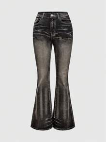Grunge Punk Pantalones acampanados con desgaste vintage Y2K de colores para mujer, para otoño/invierno