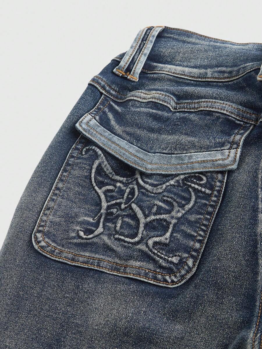 Grunge Punk Jeans acampanados vintage del año 2000, pantalones vaqueros de mujer elásticos y desgastados con múltiples bolsillos