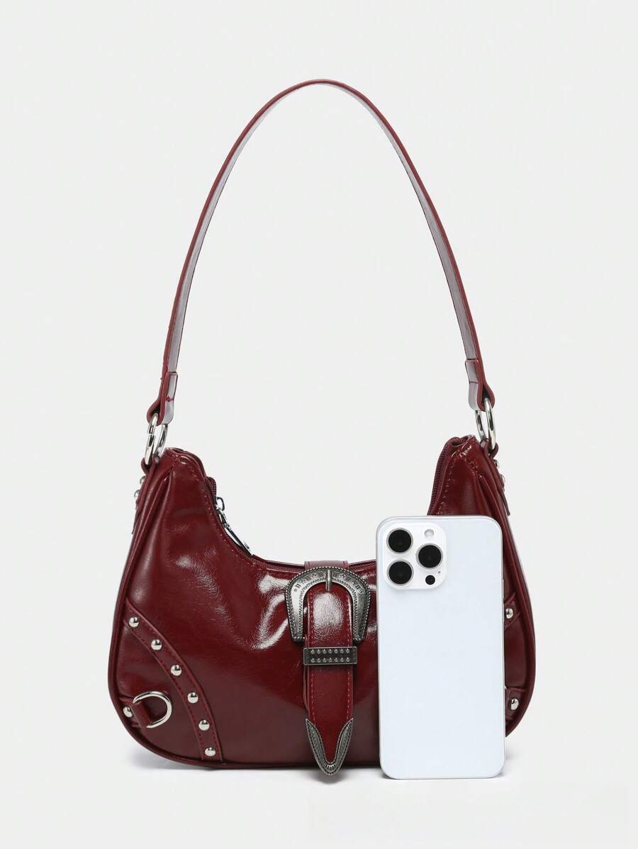 Grunge Punk Bolso con aspecto agrietado y patrón western vintage Y2K con hebilla decorativa, media luna debajo del brazo, adecuado para salidas, citas y reuniones
