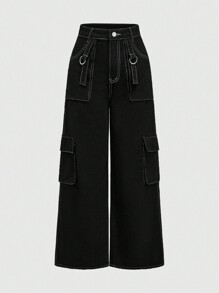 Grunge Punk Jeans de mezclilla con botones al frente y bolsillos, uso casual diario para mujeres