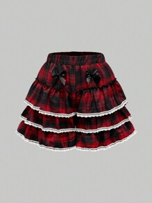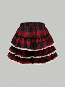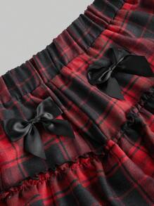 Grunge Punk Shorts de cuadros punk para mujeres con lindos detalles de lazo y ribete de contraste