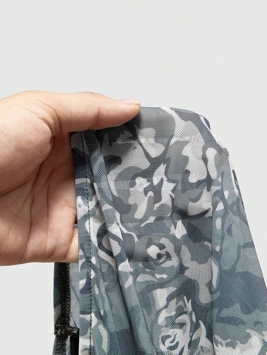 Grunge Punk Top de malla sin espalda sexy y de vacaciones estilo camuflajeY2K para mujer