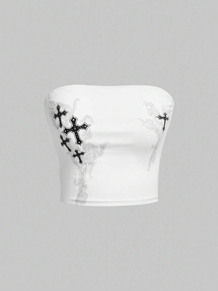 Grunge Punk Top Bandeau Con Estampado Cruzado Para Mujer