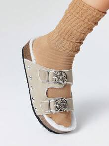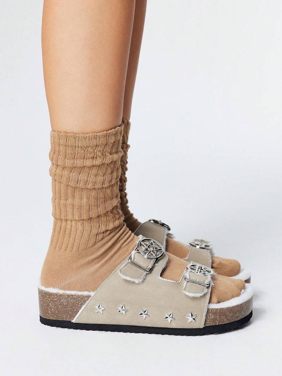 Grunge Punk Sandalias de playa de estilo romano punk oscuro para mujer, zapatillas de vacaciones con tira deslizante, sandalias de plataforma con cuña y punta abierta con estrella
