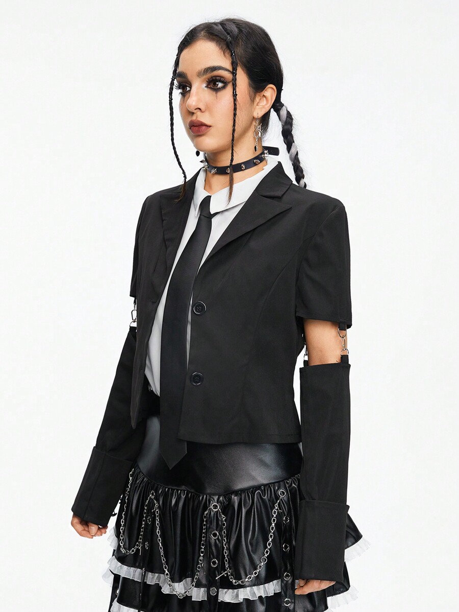 Grunge Punk Blazer metálico deconstruido para mujer con parches en las mangas