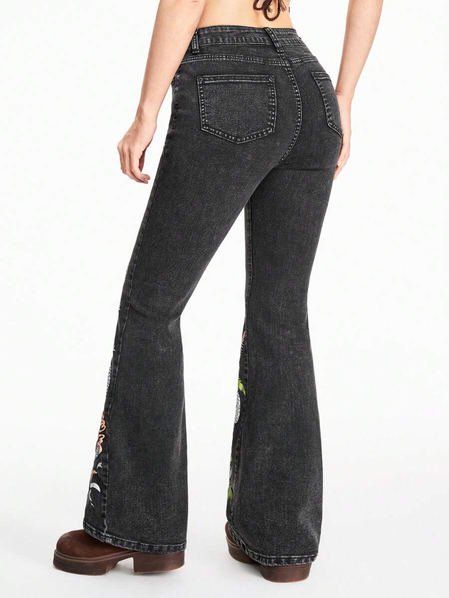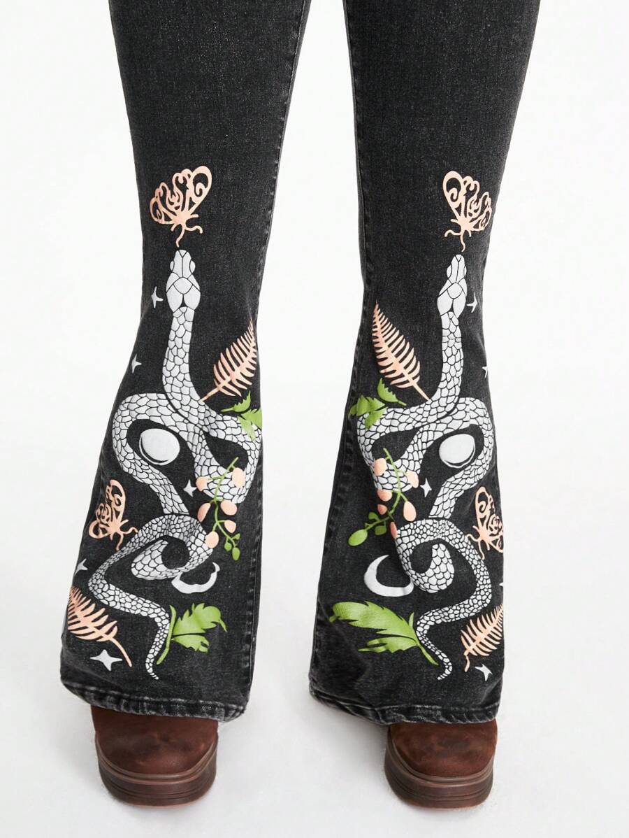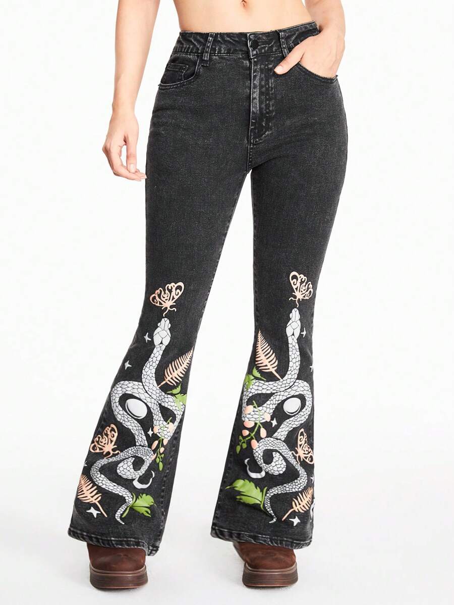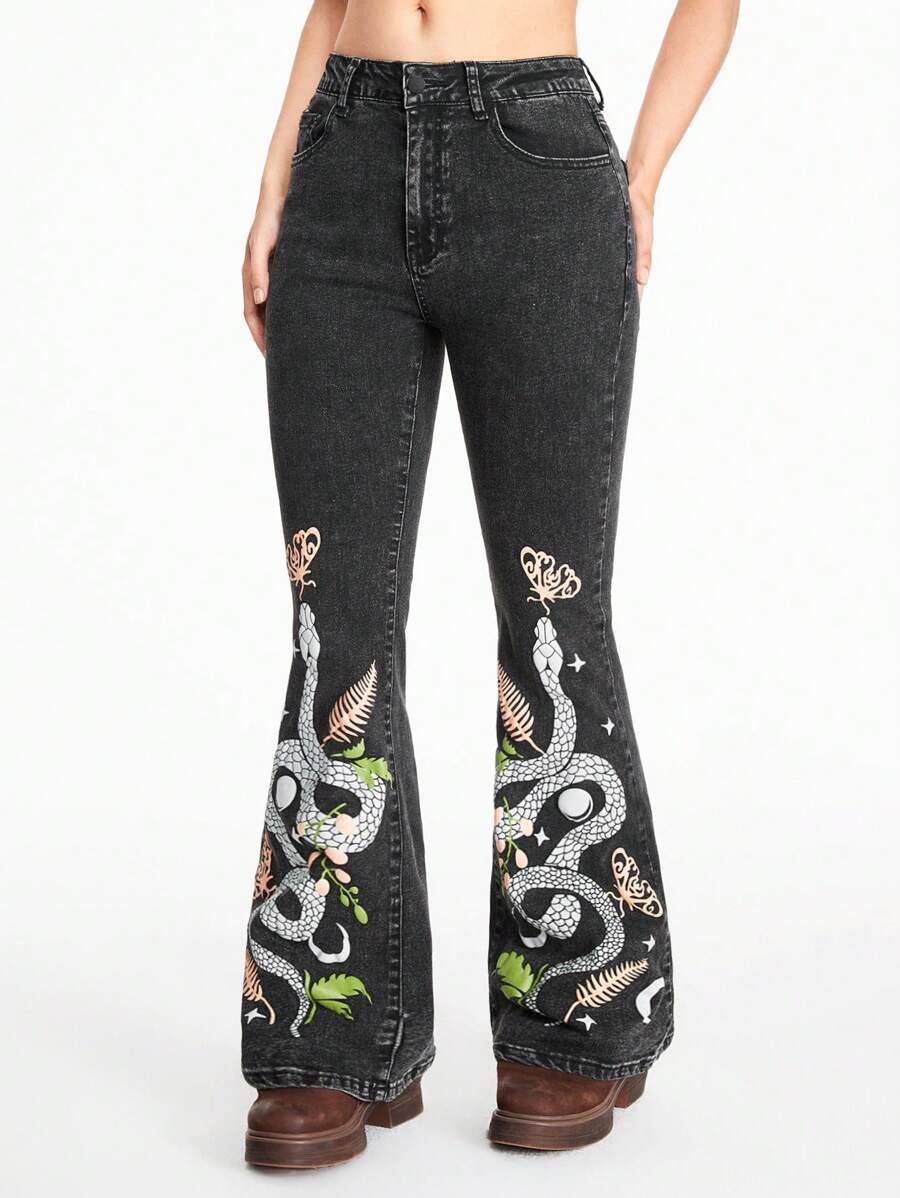 Grunge Punk Jeans de mezclilla con estampado de serpiente, cierre delantero con botones, múltiples bolsillos, para uso casual diario de mujer