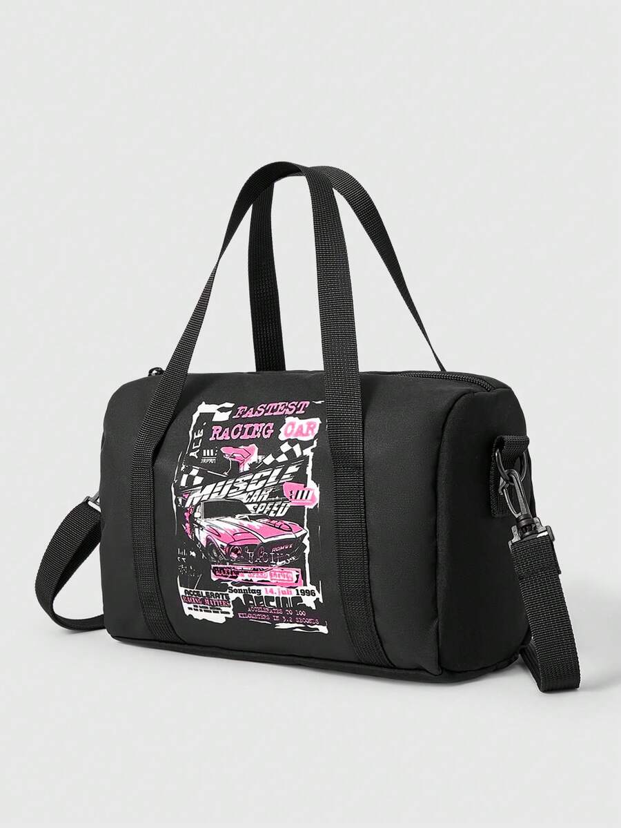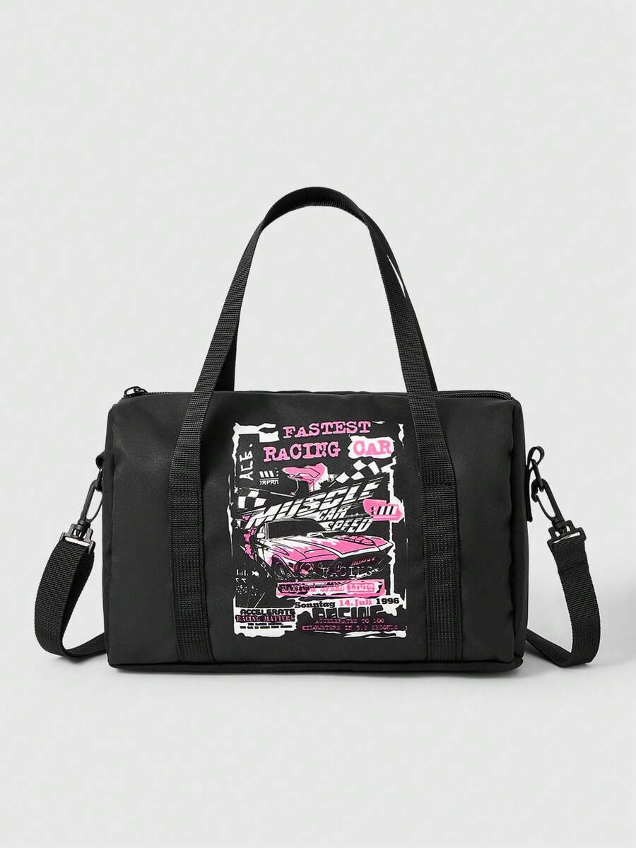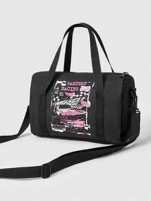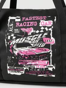 Grunge Punk Bolso de hombro casual de gran capacidad para mujer, color rosa de carreras