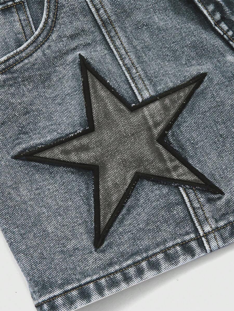 Grunge Punk Pantalones cortos vaqueros de cargo con bolsillos y bordado de estrella negra en estilo punk, para verano