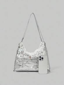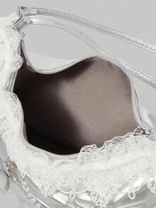Grunge Punk Bolso de hombro de moda con volantes de encaje de estilo punk y contraste