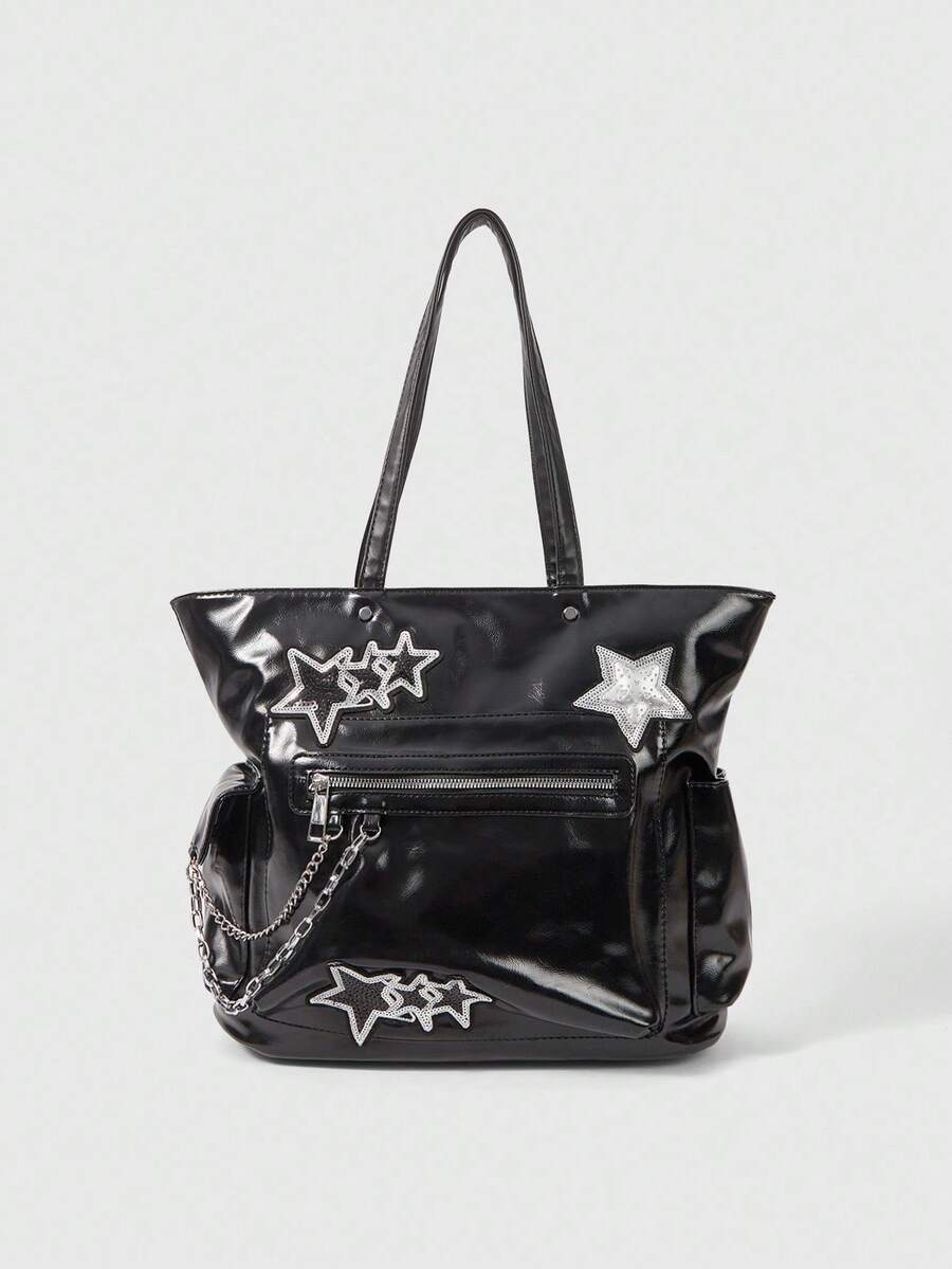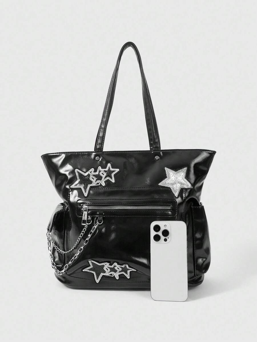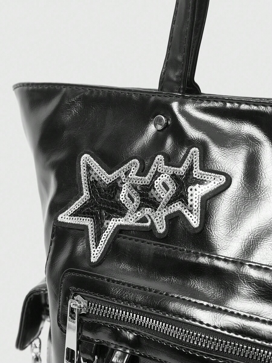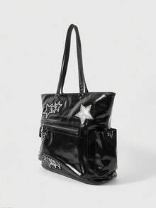 Grunge Punk Bolso de mano de estilo punk para mujer con diseño de cremallera y múltiples estrellas de gran capacidad