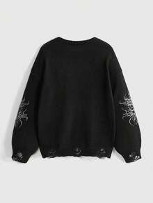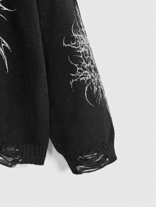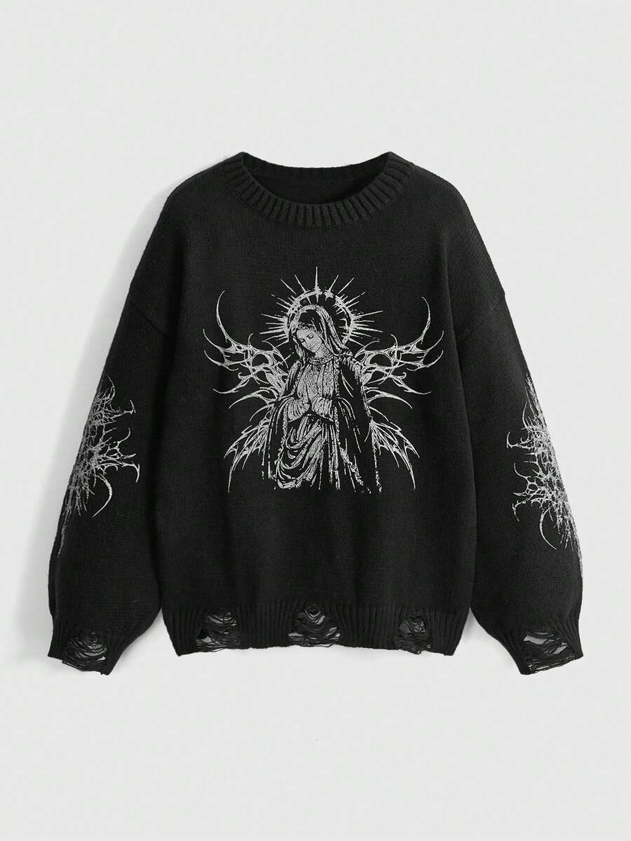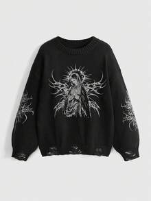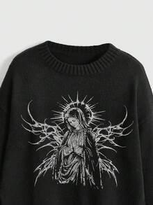 Grunge Punk Suéter de cuello redondo a juego con estampado vintage de la Virgen María y espinas, estilo punk y desgastado, para mujer