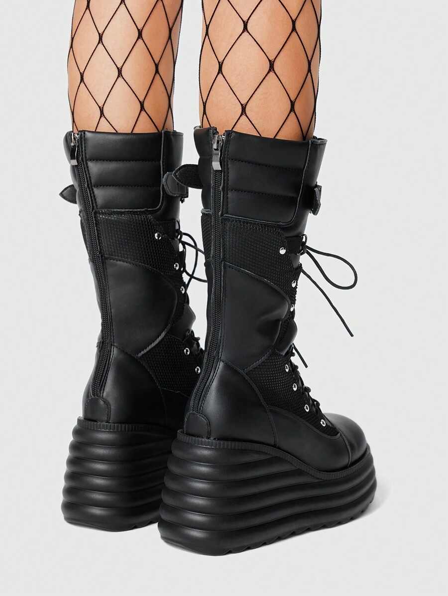 Grunge Punk Botas de tobillo y botas cortas de unicolor con decoración metálica de estilo minimalista casual para mujeres