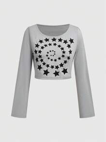 Grunge Punk Camiseta Con Estampado De Estrellas Para Mujer