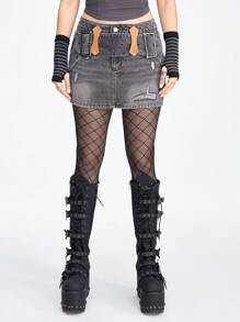 Grunge Punk Falda vaquera recta y desgastada de moda para mujer en verano