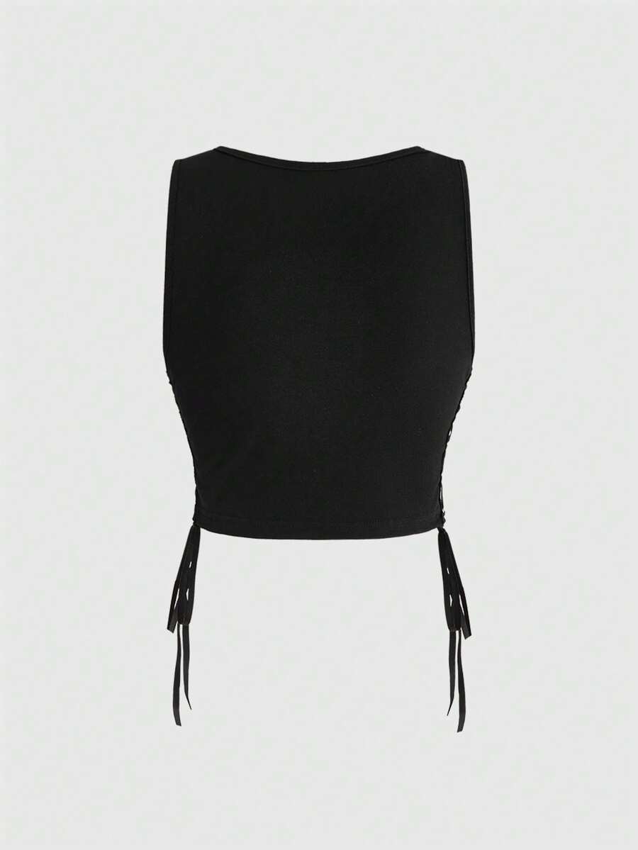 Grunge Punk Camiseta de tirantes ajustada con estampado de insignia con eslogan para mujer