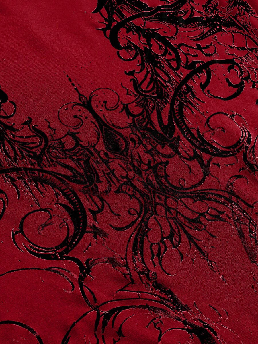 Grunge Punk Camiseta ajustada de mujer con estampado vintage, mangas de encaje y cuello asimétrico, estilo Y2K