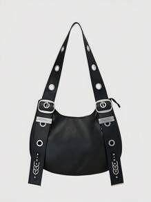 Grunge Punk Bolso de hombro inclinado con estilo punk de metal grunge Y2K, correa ancha ajustable, bolso casual para damas, adecuado para ir al trabajo, compras, viajes y otras ocasiones