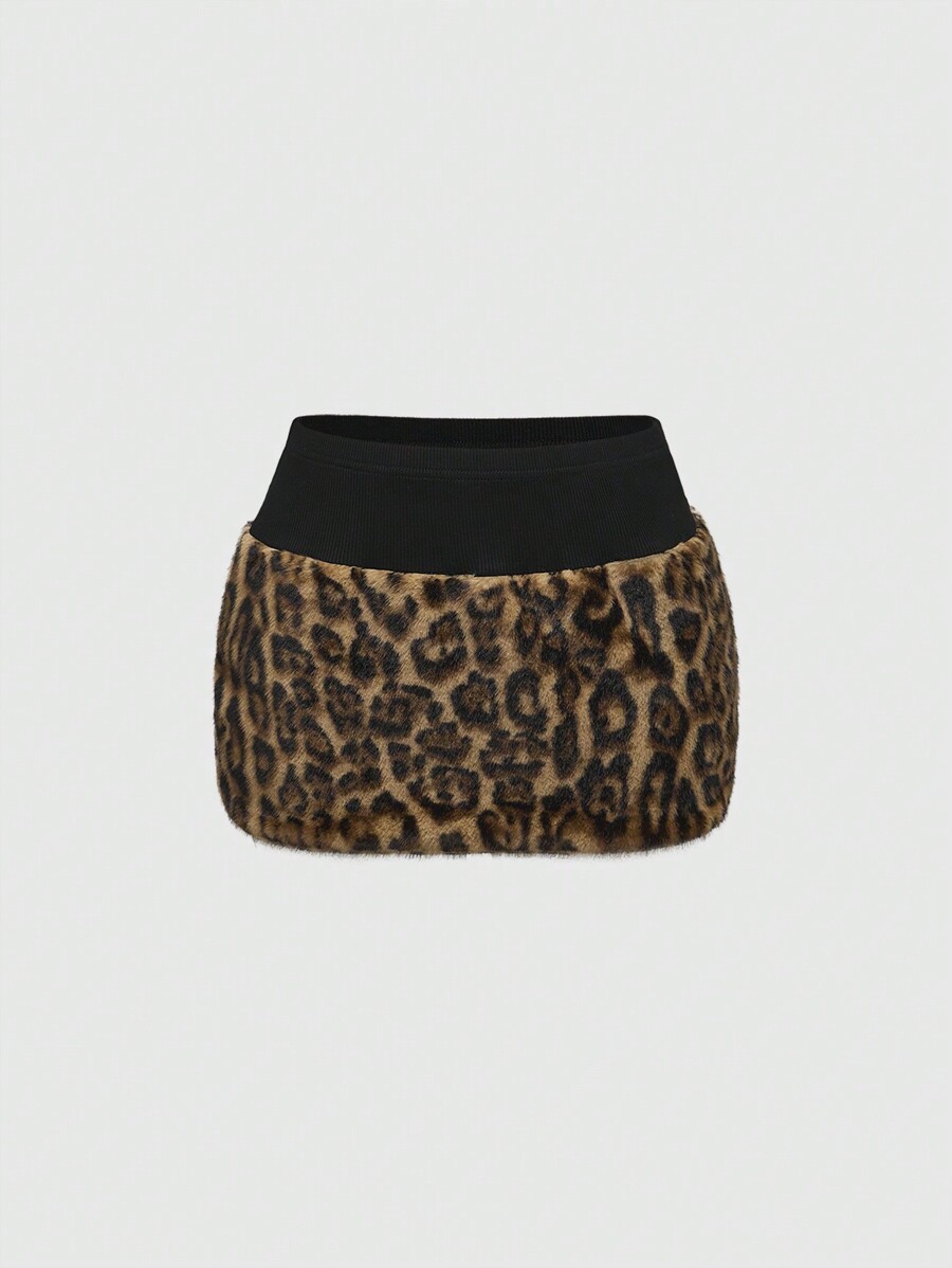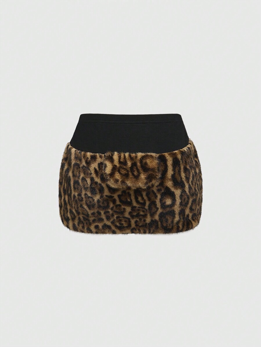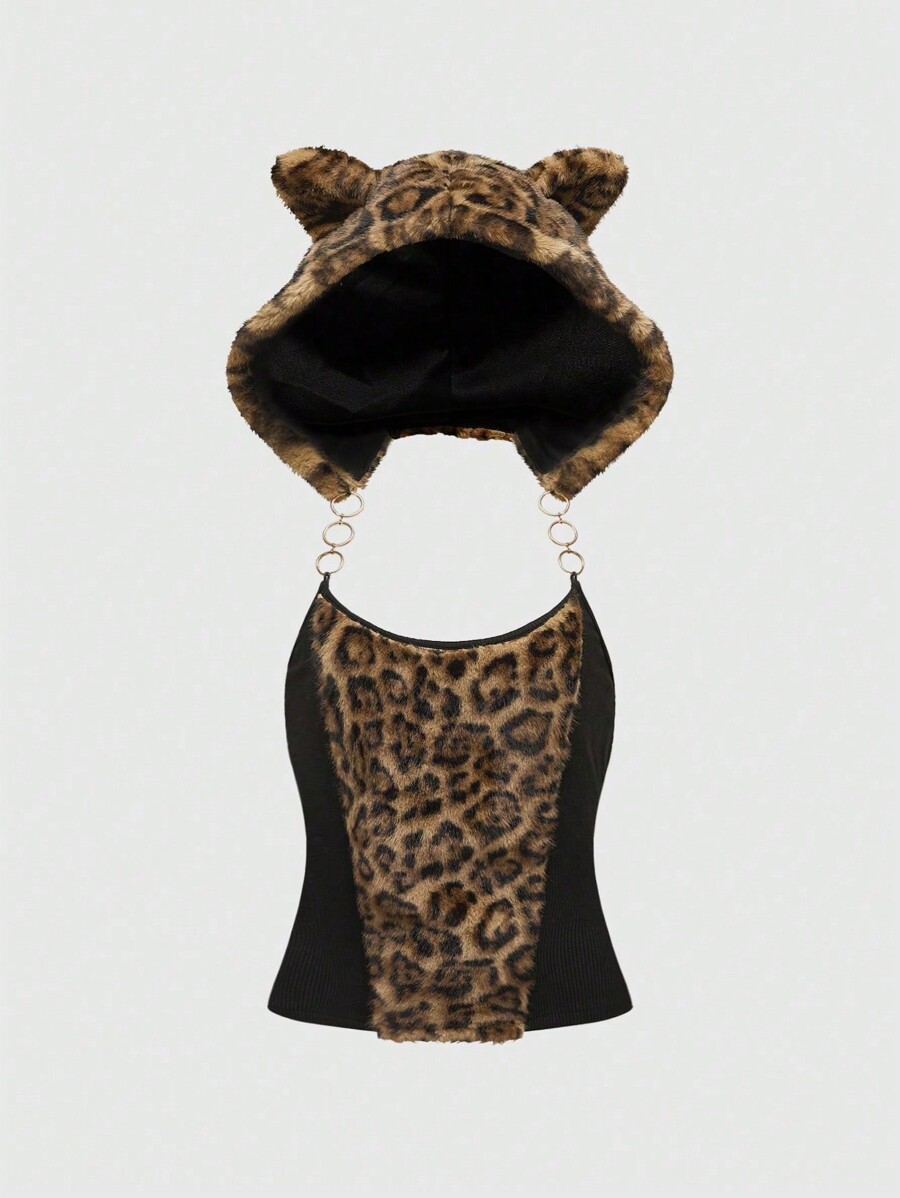 Grunge Punk Conjunto de 2 piezas con capucha y orejas de gato de felpa sintética de estilo patchwork y estampado de leopardo, en estilo Harajuku Gal Y2K para mujer