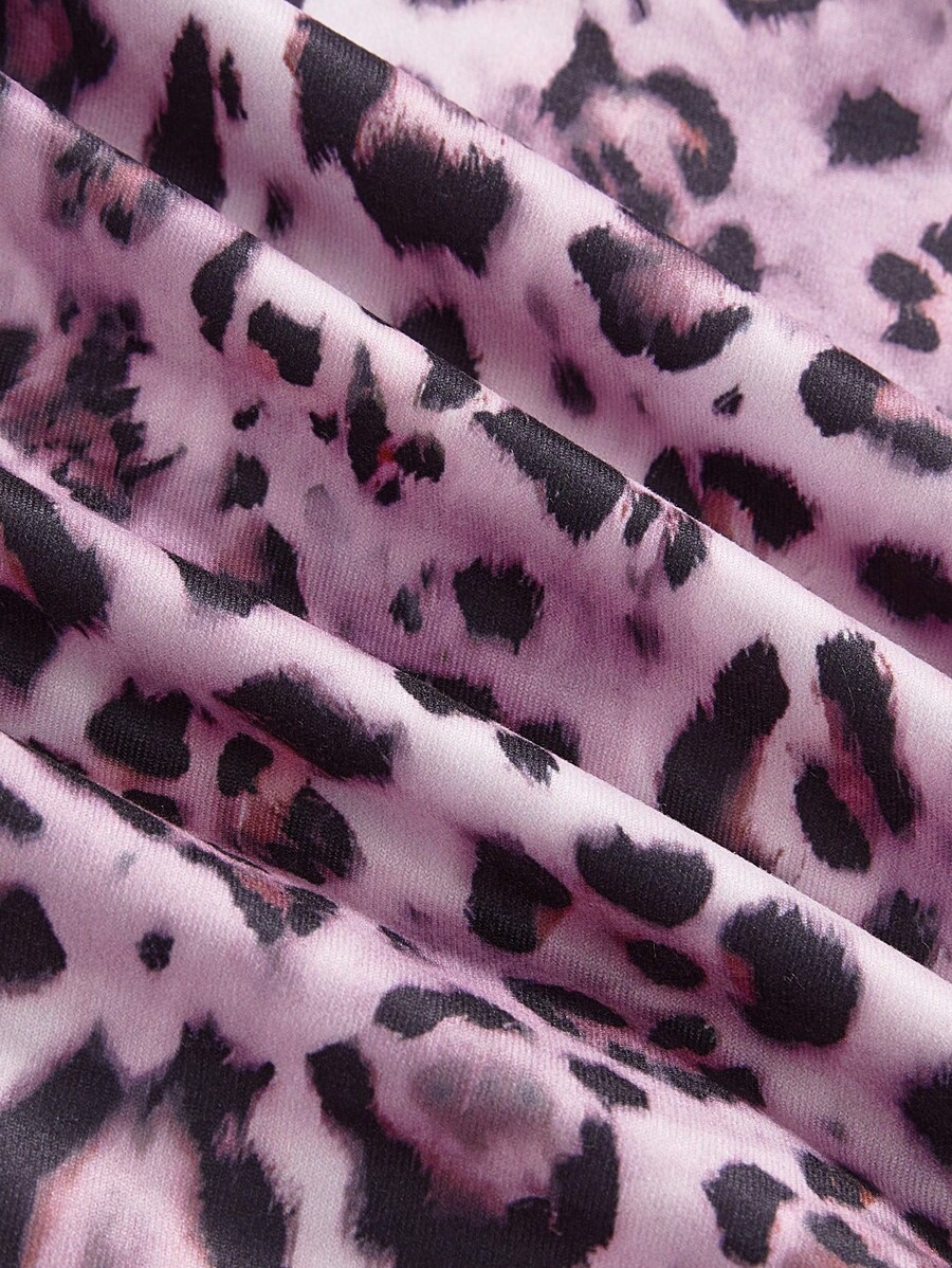 Grunge Punk Top bandeau ajustado con drapeado y estampado de leopardo gráfico completo para mujeres, estilo Y2K