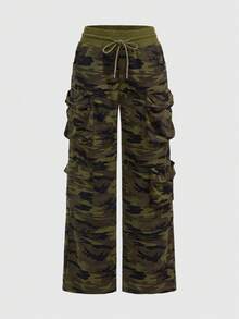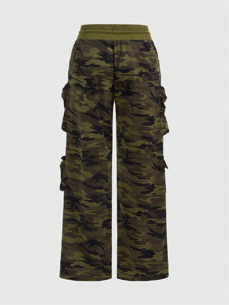 Grunge Punk Pantalones de chándal acampanados de mujer con estampado decorativo camuflaje de todo el Body en estilo Y2K punk