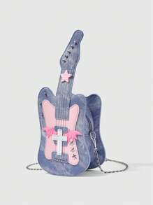 Grunge Punk Bolso de hombro de mujer con diseño de estrella punk lindo, calavera, alas y cruz, ideal para fiestas y festivales de música. Bolso mensajero personalizado de estilo patchwork, rock, con remaches y guitarra.