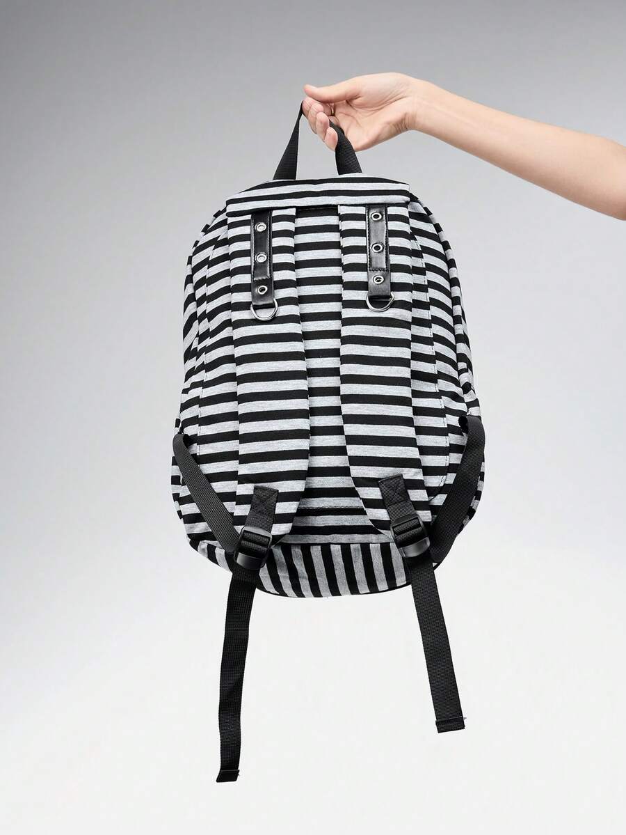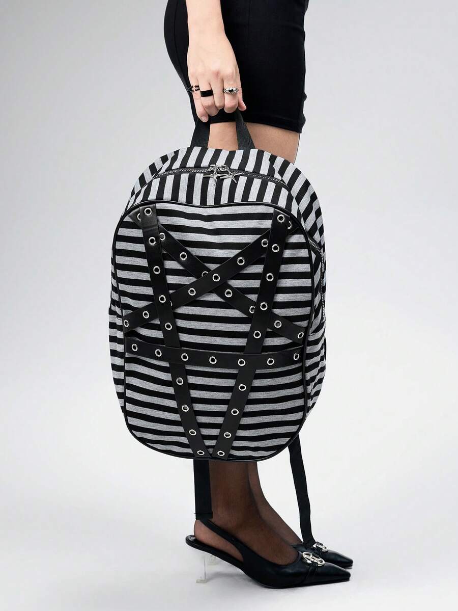 Grunge Punk Mochila de mujer de moda Y2K Punk Goth con ojales perforados, correas con tachuelas y rayas de contraste, de gran capacidad para laptop, casual