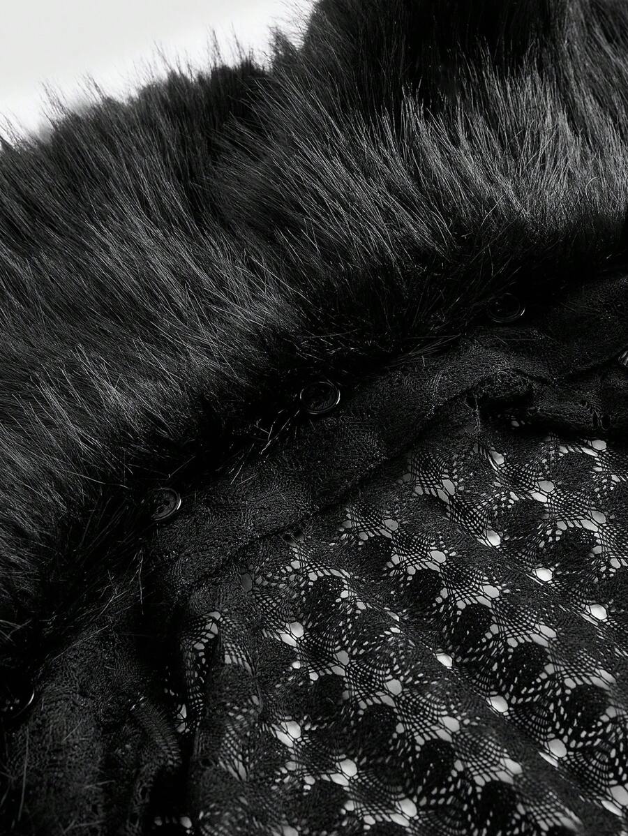 Grunge Punk Cárdigan entallado con cuello de piel sintética elástico estilo retro Y2K para mujeres