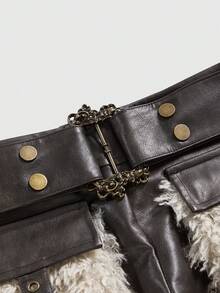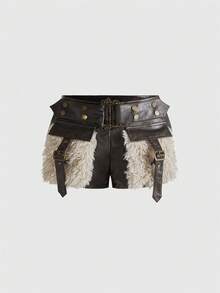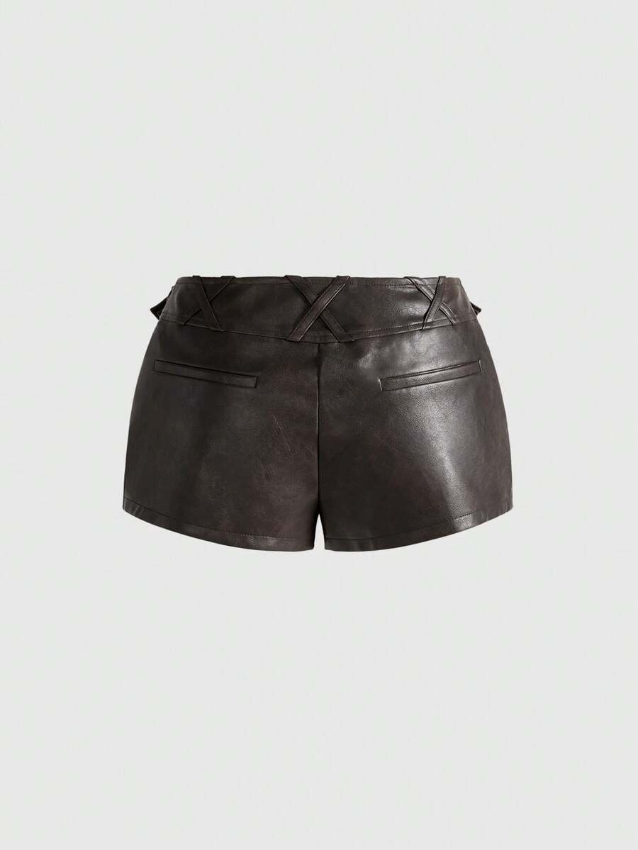 Grunge Punk Shorts mini de cintura ultra baja con parches de piel sintética desgastada en estilo retro Y2K