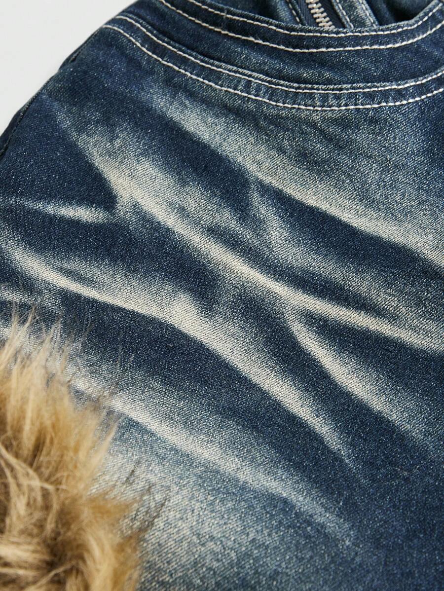 Grunge Punk Minifalda vaquera de retazos desgastada estilo retro Y2K con cuello esponjoso para mujer