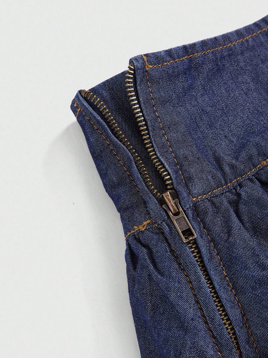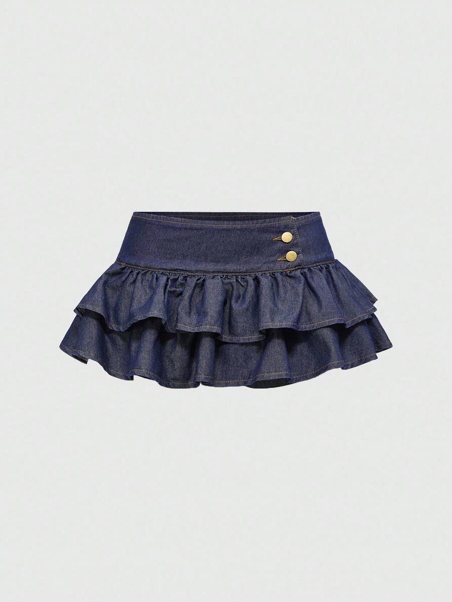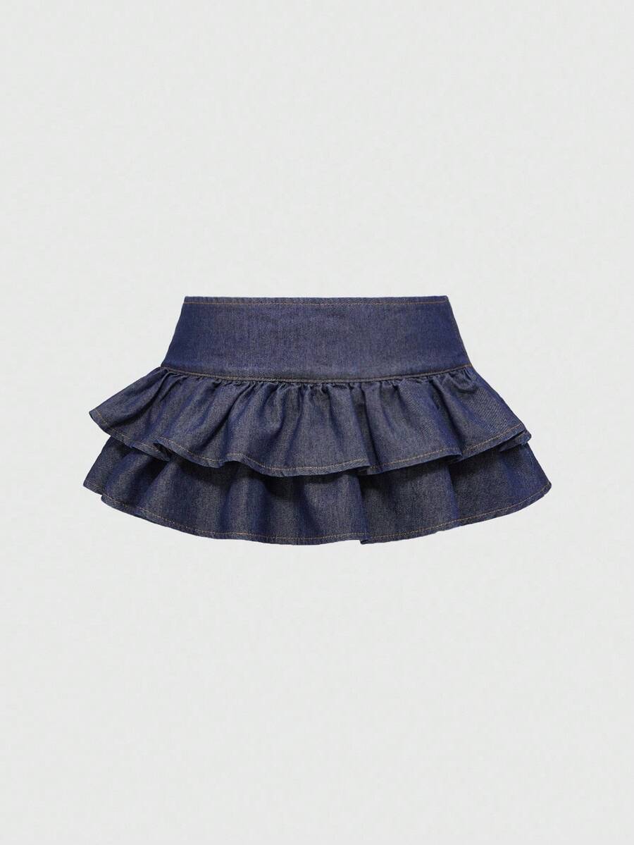 Grunge Punk Minifalda vaquera azul con cintura baja sexy y doble volante en el bajo, estilo retro Y2K