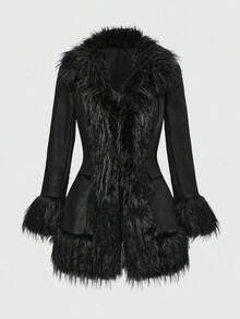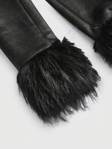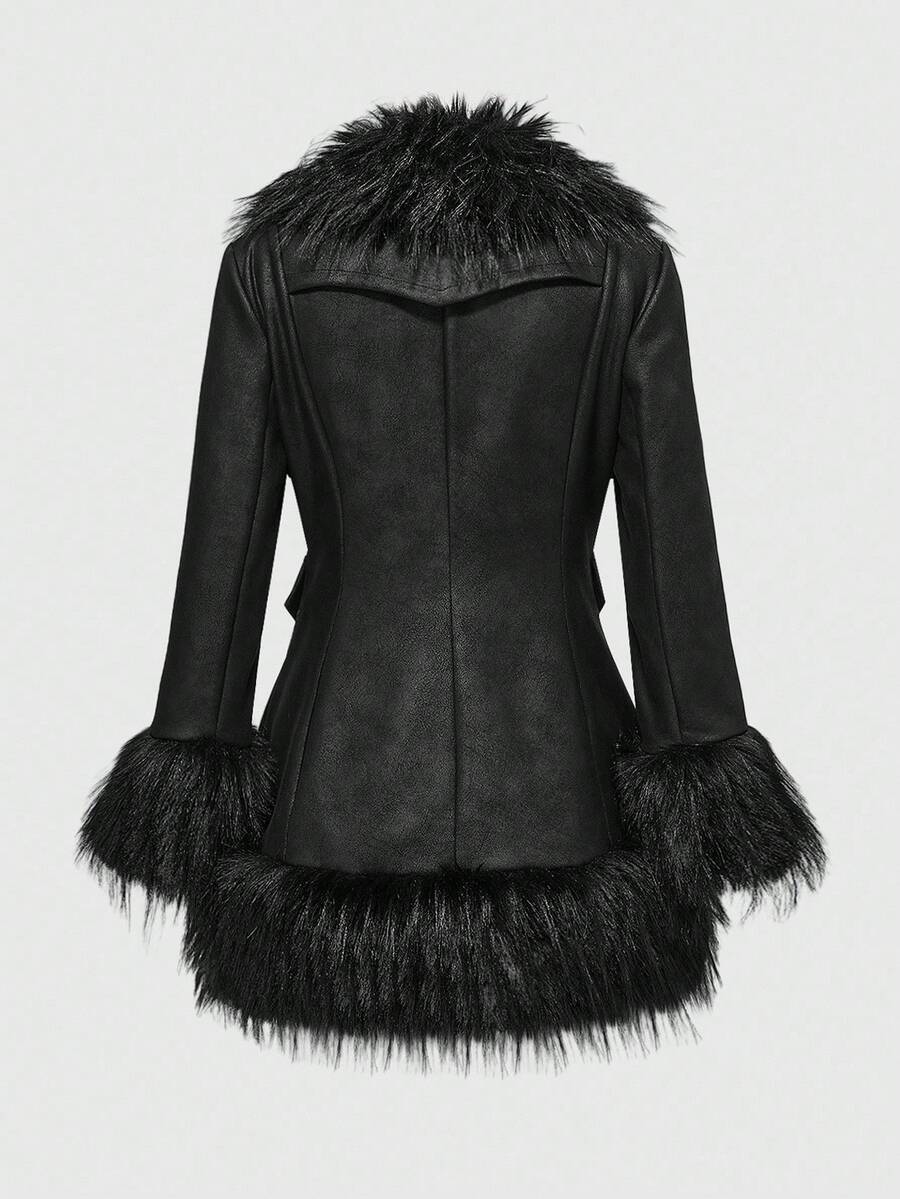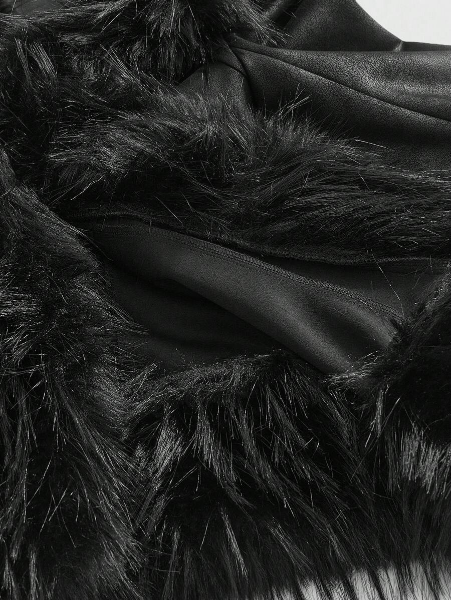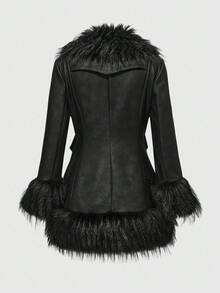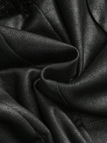 Grunge Punk Chaqueta de longitud media con parches de piel sintética y gamuza en estilo retro sexy Y2K para mujeres
